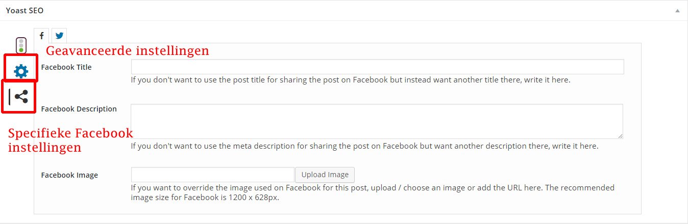 De geavanceerde opties en de tekst(en) voor Facebook zitten nog steeds onder de vertrouwde iconen. Klik hiertoe op het tandwielicoon of het delen icoon.
